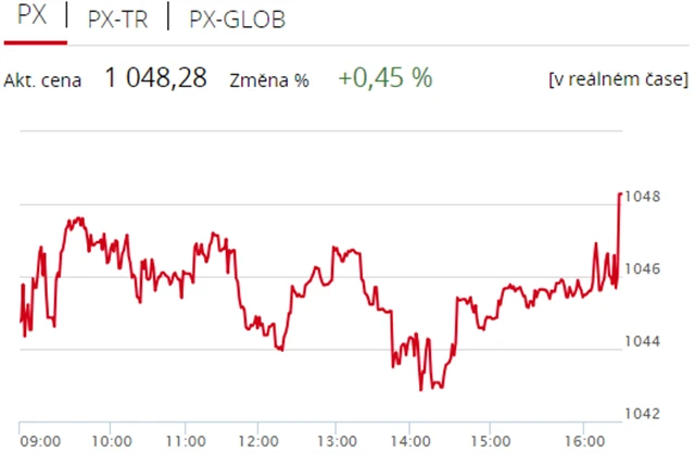 Pražská burza v pátek pošesté v řadě zpevnila, index PX získal 0,45 % na 1 048,28 bodu. Nahoru burzu táhly zejména akcie Komerční banky, proti trendu šla například mediální společnost CME. Objem obchodů byl s 375 miliony korun výrazně podprůměrný.