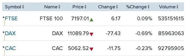 Celoevropský akciový index STOXX Europe 600 zakončil obchodování o 0,2 procenta níže než ve středu. Do červených čísel jej následovala většina sektorů a jednotlivých trhů. Hlavní index londýnské burzy FTSE 100 sice zůstal těsně nad nulou (+0,09 %), ale německý DAX odepsal 0,69 procenta a francouzský CAC 40 si pohoršil o 0,23 procenta.