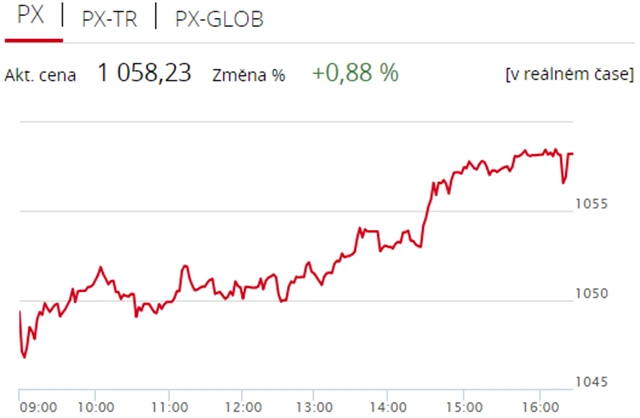 Pražská burza se v pátek odrazila od čtvrteční ztráty, když index PX stoupl o 0,88 % na 1 058,23 bodu. Nahoru burzu táhly zejména akcie Erste Group Bank a energetické skupiny ČEZ, proti trendu šla například likérka Stock Spirits. Objem obchodů byl s 443 miliony korun podprůměrný.