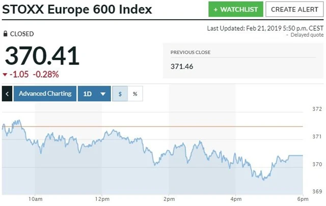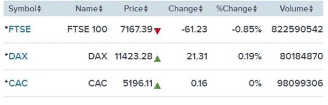 Celoevropský akciový index STOXX Europe 600 uzavřel se ztrátou 0,28 %. Hlavní index londýnské burzy odepsal FTSE 100 0,85 %, německý DAX stoupl o 0,19 % a francouzský CAC 40 skončil na zelené nule.