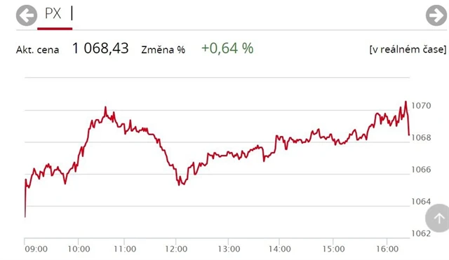 Index pražské burzy PX během čtvrtečního obchodování přidal 0,64 procenta a zakončil seanci na hodnotě 1068,43 bodu. Nejbchodovanějším i nejúspěšnějším titulem byla rakouská Erste Group Bank, dařilo se také likérce Stock Spirits a výrobci antivirového softwaru Avast. Většina hlavních emisí zakončil obchodování v černých číslech; k výjimkám patřily textilka PFNonwovens a tabákový výrobce Philip Morris ČR. Zobchodovaný objem čítal těsně pod 450 milionů korun.