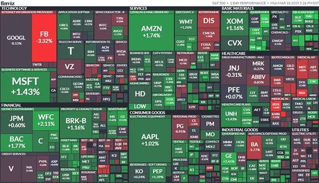 Vzhůru zamířily například akcie technologické společnosti Apple (+1,02 %), která představila nový tablet iPad Air. Akcie firmy Facebook (-3,32 %) však oslabily kvůli obavám z regulace jejích aktivit a akcie Boeingu (-1,77 %) byly stále pod tlakem kvůli dvěma nehodám letounů 737 MAX.