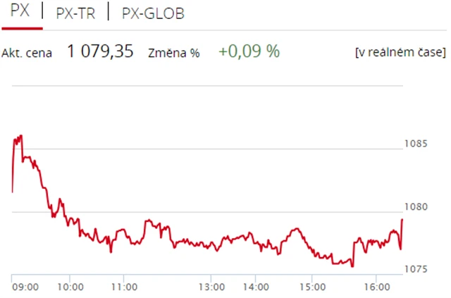 Pražská burza v pátek nenásledovala pokles evropských trhů a vzrostla. Index PX stoupl o 0,09 procenta na 1 079,35 bodu. Dolů burzu nestáhly ani ztráty společností ČEZ a Erste Group Bank, které byly nejobchodovanější. Celkový objem obchodů byl s 469 miliony korun mírně podprůměrný.