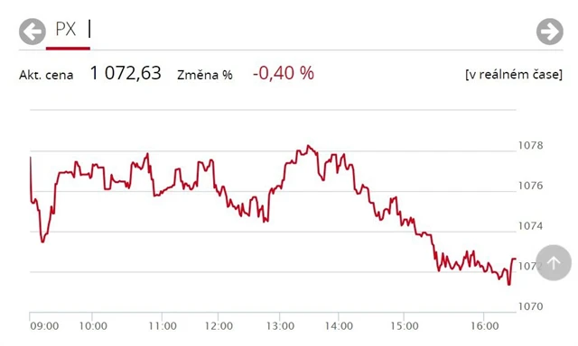 Index pražské burzy PX poklesl během čtvrtečního obchodování o 0,40 procenta a uzavřel seanci na hodnotě 1072,63 bodu. Za poklesem stály ztráty tří nejobchodovanějších titulů, státní energetické firmy ČEZ, Erste Group Bank a Komerční banky. Tyto tři emise také obstaraly více než polovinu celkového zobchodovaného objemu necelých 470 milionů korun. Ostatní velké tituly pražské burzy se vesměs držely v černých číslech; nejvíce se dařilo akciím mediální společnosti CME, likérky Stock Spirits a tabákového výrobce Philip Morris ČR.