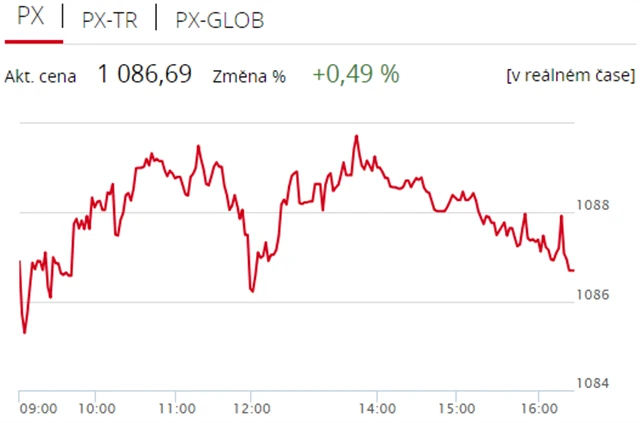 Pražská burza se ve středu odrazila od ztráty z úterního obchodování, když index PX zpevnil o 0,49 % na 1 086,69 bodu. Nahoru burzu táhly zejména akcie Erste Group Bank, proti trendu naopak šla Komerční banka. Objem obchodů byl s 377 miliony korun výrazně podprůměrný.