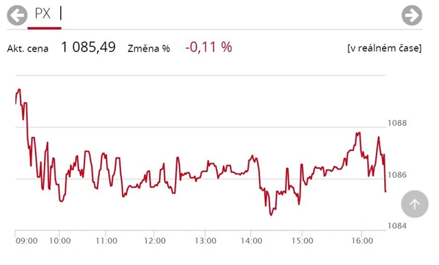 Index pražské burzy PX odepsal během čtvrtečního obchodování 0,11 procenta a uzavřel seanci na hodnotě 1085,49 bodu. V čele mírného sestupu stály Komerční banka a Erste Group Bank, ačkoli nejoobchodovanější tituly, MONETA Money Bank a ČEZ, skončily v černých číslech. Podprůměrný zobchodovaný objem čítal necelých 296 milionů korun.