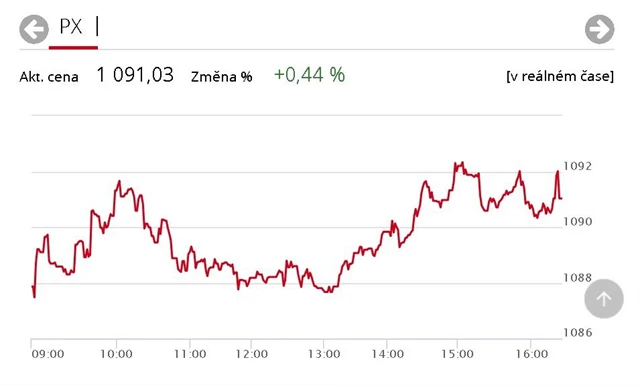 Pražská burza ve čtvrtek navázala na středeční vzestup, index PX posílil o 0,44 % na 1 091,03 bodu. Vzhůru mu pomohl zejména růst ceny akcií Erste Group Bank.