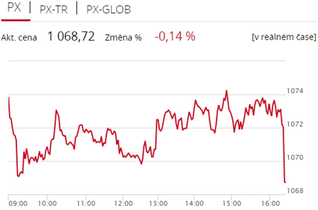 Pražská burza v úterý mírně klesla, akcie CME po zveřejnění kvartálních výsledků zdražily zhruba o 0,4 %