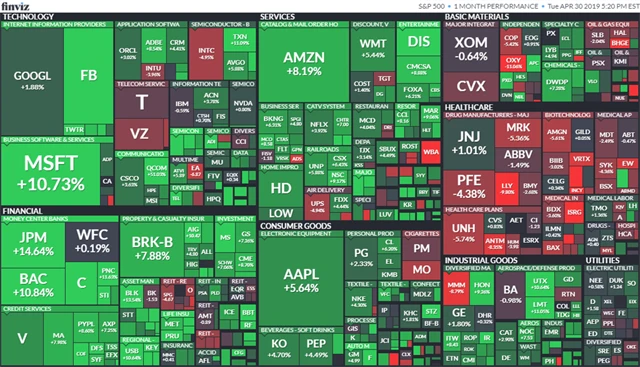 Za celý duben index Dow posílil o 2,56 %, S&P 500 přidal 3,93 % a Nasdaq Composite se zvýšil o 4,90 %.