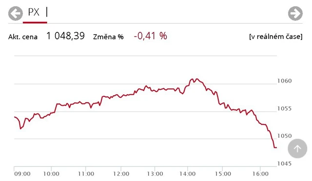 Index pražské burzy PX během čtvrtečního obchodování odepsal 0,41 procenta a uzavřel seanci na hodnotě 1 048,39 bodu. Ze třinácti hlavních emisí pět stoupalo a pět klesalo; obchodování ovládly akcie státní energetické firmy ČEZ, jež byly předmětem dvou třetin veškerého zobchodovaného objemu (celkem 556 milionů korun). Jejich cena však stagnovala; sestup ostatních titulů vedly ztráty Erste Group Bank a Komerční banky. Větším ztrátám zabránily cenné papíry mediální firmy CME.