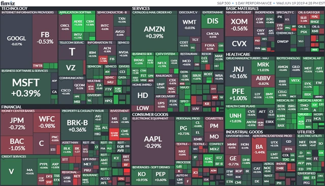 Výrazně ve středu stouply akcie firmy Adobe (+5,21 %) díky výsledkům hospodaření, které překonaly očekávání analytiků. Dařilo se i podnikům ze sektoru zdravotnictví, zpevnily například akcie UnitedHealth Group (+1,83 %), Pfizeru (+1,00 %) a Allerganu (+6,23 %). Akcie sociální sítě Facebook (-0,53 %) naopak v reakci na plánované zavedení vlastní digitální měny společnosti klesly. V reakci na prohlášení Fedu pak klesly akcie bankovních společností.