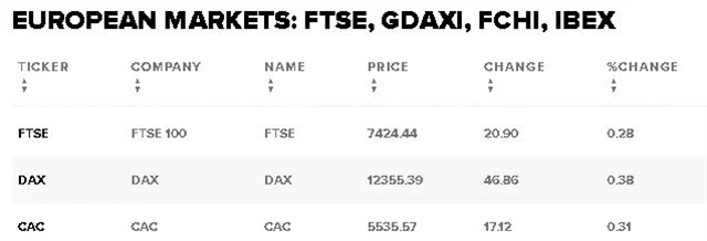 Celoevropský akciový index STOXX Europe 600 uzavřel se ziskem 0,36 procenta, když se během dne dostal na nejvyšší hodnotu od 6. května. Hlavní index londýnské burzy FTSE 100 si připsal 0,28 procenta, německý DAX stoupl o 0,38 procenta a francouzský CAC 40 si polepšil o 0,31 procenta.