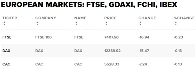 Evropské akcie (21. června 2019), zdroj: CNBC