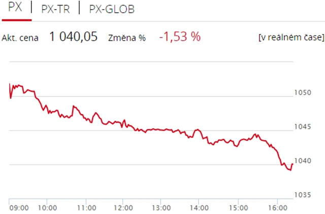 Pražská burza zakončila úterní seanci hluboko v červených číslech, index PX spadl o 1,53 % na 1 040,05 bodu. Nedařilo se zejména Erste Group Bank (-4,97 % na 799 Kč), která v úterý oznámila, že vytvoří opravnou položku ve výši 230 milionů eur na soudní spor v Rumunsku. Objem obchodů byl s 522 miliony korun mírně nadprůměrný.