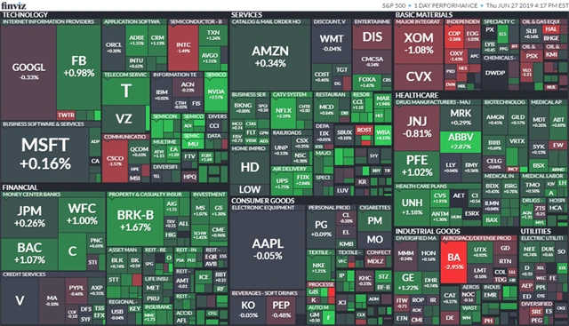 Akcie ve Spojených státech ve čtvrtek uzavřely převážně v plusu. Investoři svou pozornost upírali na summit skupiny G20, který v pátek začíná v Ósace. Jednání v Japonsku by totiž mohlo naznačit, zda lze čekat posun v americko-čínském obchodním sporu. Dolar byl na devizových trzích téměř beze změn.