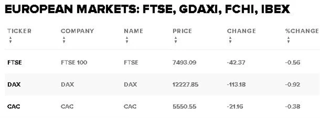 Celoevropský akciový index STOXX Europe 600 ztratil 0,21 procenta, když nejhůře se vedlo technologickému sektoru. Hlavní index londýnské burzy FTSE 100 odepsal 0,56 procenta, německý DAX poklesl o 0,92 procenta a francouzský CAC 40 si pohoršil o 0,38 procenta.