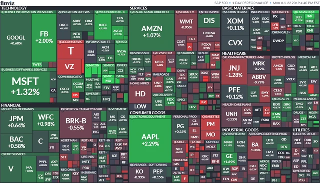 Akcie ve Spojených státech uzavřely pondělní obchodování se zisky. Podpořila je naděje na nižší úrokové sazby Fedu a čekání na výsledkové zprávy firem Facebook, Alphabet a Amazon, které je zveřejní tento týden.