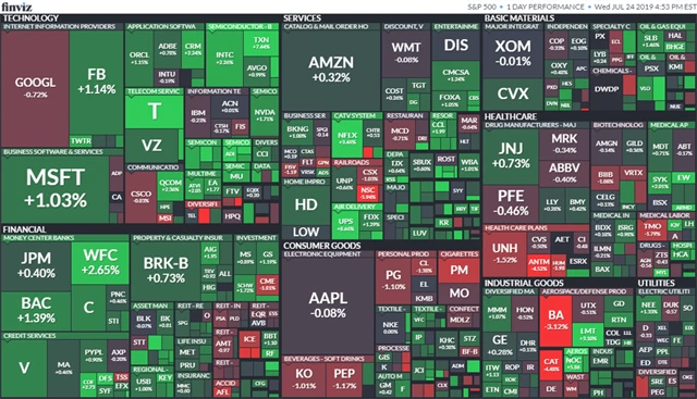 Akcie společnosti Boeing (-3,12 %) klesly o více než tři procenta, protože firma vykázala vysokou čtvrtletní ztrátu v důsledku přerušení provozu jejích nejprodávanějších letadel 737 MAX po dvou vážných nehodách. Strojírenská firma Caterpillar (-4,48 %) oslabila kvůli negativnímu dopadu slabých tržeb v Číně a vyšších výrobních a restrukturalizačních nákladů na její zisk.