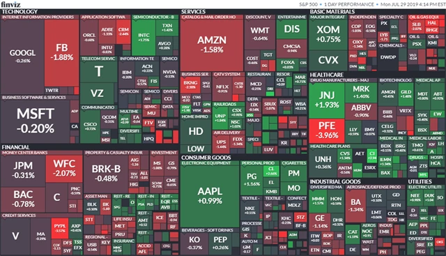 Se ztrátou skončilo devět z 11 velkých sektorů, které jsou součástí indexu S&P 500. Největší propad zaznamenaly výrobci spotřebního zboží a firmy z oblasti komunikačních služeb. Prudce stouply akcie farmaceutické firmy Mylan (+12,57 %) po zprávě, že se sloučí s divizí Upjohn firmy Pfizer (-3,81 %). Akcie Pfizeru naopak klesly, protože firma zhoršila výhled zisku a příjmů za celý letošní rok.