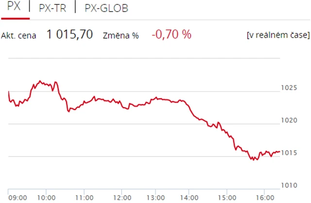 Pražská burza zakončila středeční obchodování v minusu, index PX odepsal 0,7 % na 1 015,7 bodu. Dolů burzu stáhly finanční tituly, proti trendu šla mediální CME (+1,34 % na 106 Kč). Objem obchodů byl s 495 miliony korun průměrný.