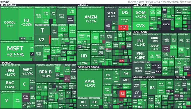 Index Dow stoupl o 371 bodů na 26 378,53 bodu, což v procentuálním vyjádření představuje 1,43% růst. Širší benchmark S&P 500 si polepšil o 1,88 % na 2 938,14 bodu a index Nasdaq Composite vzrostl o 2,24 % na 8 039,16 bodu. Index volatility VIX se propadl o 13,03 % na 16,95 bodu a výnos 10letých vládních dluhopisů USA se snížil o dva bazické body na 1,72 %.