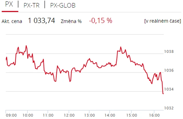 Pražská burza zakončila úterní obchodování v minusu, index PX přišel o 0,15 % na 1 033,74 bodu. Dolů burzu stáhly zejména akcie elektrárenské skupiny ČEZ, které zlevnily o 1,06 % na 515 Kč. Objem obchodů byl s 275 miliony korun výrazně podprůměrný.