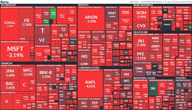 Nejnovější vývoj americko-čínské obchodní války zatlačil do pozadí projev šéfa Fedu, který v americkém horském letovisku Jackson Hole uvedl, že centrální banka uskuteční patřičné kroky k udržení hospodářského růstu ve Spojených státech. Nedal ale jasně najevo, zda Fed příští měsíc přikročí k dalšímu snížení svých úrokových sazeb.