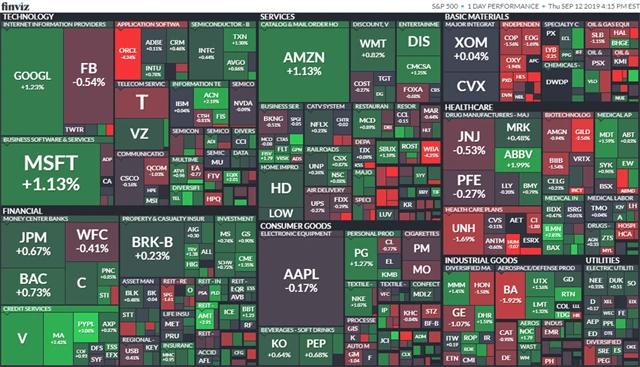 Dařilo se technologickým společnostem, které jsou citlivé na vývoj obchodu. Vysoký růst zaznamenali také výrobci spotřebního zboží. Kvůli horšímu hodnocení od finanční společnosti Wells Fargo naopak oslabily akcie průmyslových firem Deere & Co. (-1,09 %) a Caterpillar (-1,06 %).