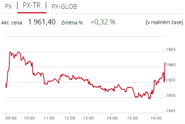 Pražská burza zakončila pondělní obchodování v pozitivním pásmu, index PX si připsal 0,32 % na 1 961,4 bodu. Nahoru burzu táhly zejména akcie energetické skupiny ČEZ, které zdražily o 0,48 % na 522,50 Kč. Nedařilo se ale nápojářské skupině Kofola ČeskoSlovensko (-1,36 % na 290 Kč) a mediální společnosti CME (-1,65 % na 107,20 Kč). Zobchodovaný objem čítal 358 milionů korun, a byl tak podprůměrný.