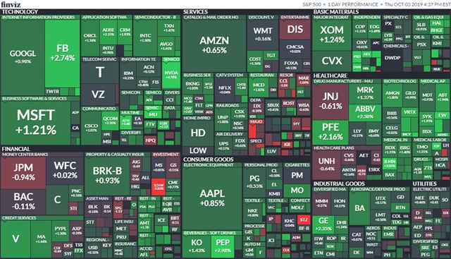 Index Dow si připsal 0,47 % na 26 201,04 bodu, širší S&P 500 vzrostl o 0,8 % na 2 910,63 bodu a index technologického trhu Nasdaq Composite se zvýšil o 1,12 % na 7 872,27 bodu. Index volatility VIX se snížil o 7 % na 19,12 bodu a výnos 10letých vládních dluhopisů USA spadl o 7 bazických bodů na 1,53 %.