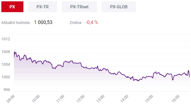 Pražská burza zakončila pondělní obchodování v minusu, index PX odepsal 0,4 % na 1 000,53 bodu. Dolů burzu stáhly zejména akcie Komerční banky (-1,63 % na 753 Kč) a Monety Money Bank (-1,13 % na 70,20 Kč). Zobchodovaný objem činil 388 milionů korun, a byl tak podprůměrný.