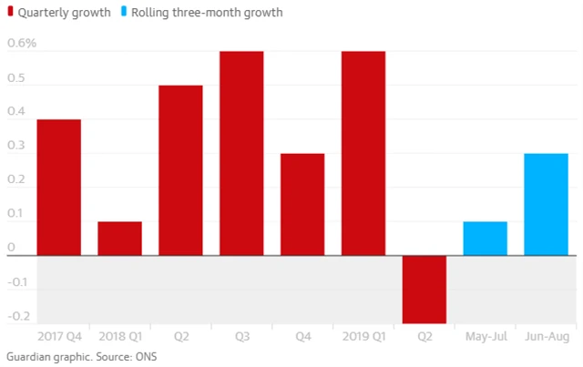Poté, co britská ekonomika ve druhém kvartálu o 0,2 % klesla - poprvé od roku 2012, jsou údaje o ekonomickém růstu bedlivě sledovány kvůli obavám z recese. Tu ekonomové zpravidla definují jako alespoň dvě čtvrtletí hospodářského poklesu za sebou. Třetí kvartál se uzavřel na konci září, srpnová data jsou tedy údaje za druhý měsíc období.