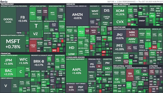 V pozitivním pásmu uzavřely všechny hlavní sektory s výjimkou utilit, které však odepsaly pouze 0,06 %. Nejvyšší zisk zaznamenala odvětví energetiky (+1,44 %) a financí (+1,22 %). Technologický sektor zpevnil zhruba o 0,7 %.