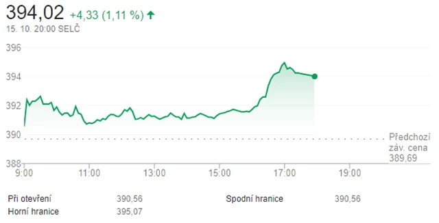 STOXX Europe 600 (15. října 2019), zdroj: Google