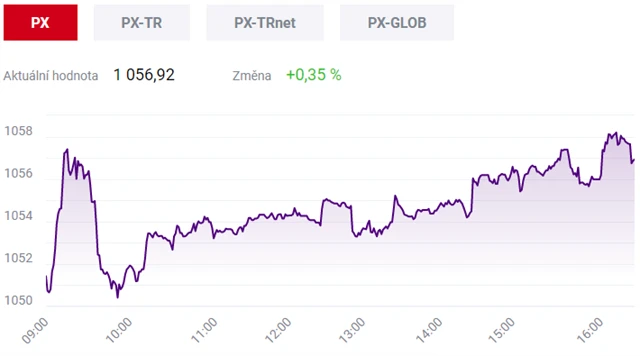 Pražská burza zakončila úterní obchodování v zelených číslech, index PX si připsal 0,35 % na 1 056,92 bodu. Nahoru burzu táhly zejména akcie antivirové firmy Avast, které zdražily o 3,36 % na 123 Kč. Nedařilo se naopak likérce Stock Spirits, která odepsala 2,04 % na 62,40 Kč. Zobchodovaný objem čítal necelých 391 milionů korun, a byl tak podprůměrný.