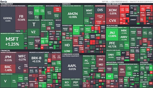 Před zveřejněním čtvrtletních hospodářských výsledků oslabily akcie společností Facebook (-0,56 %) a Apple (-0,01 %). Zisk přes deset procent si naopak připsal největší americký průmyslový konglomerát General Electric (+11,47 %), když překonal čtvrtletní odhad zisku. Výrazně posílily také akcie výrobce hraček Mattel (+13,78 %) poté, co firma zveřejnila překvapivý skok čtvrtletních příjmů.