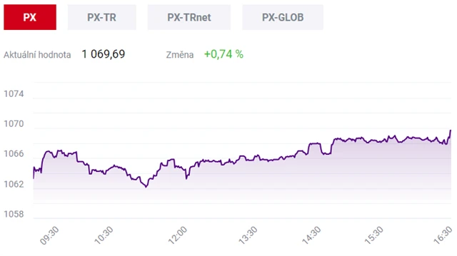 Pražská burza v úvodu týdne zpevnila, dařilo se finančním titulům