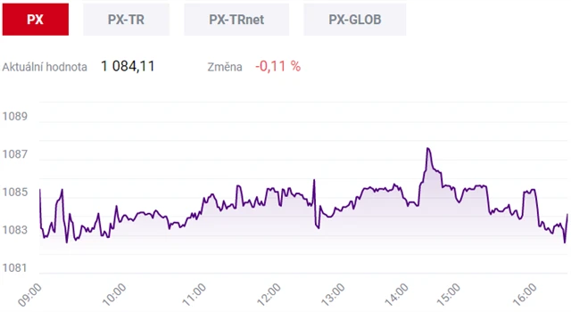 Pražská burza v úterý mírně oslabila, index PX ztratil 0,11 procenta na 1 084,11 bodu. Dolů ho stáhly především akcie energetické společnosti ČEZ, která v úterý zveřejnila hospodářské výsledky za třetí čtvrtletí, či technologické firmy Avast. Naopak se ziskem uzavřely české banky nebo operátor O2 Czech Republic. Zobchodovaný objem činil necelých 335 milionů korun, a byl tak podprůměrný.