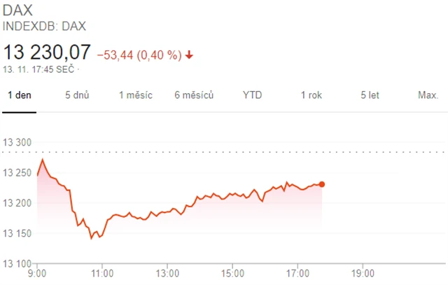 Regionální index STOXX Europe 600 odevzdal 0,32 % na 405,59 bodu, britský FTSE 100 si pohoršil o 0,19 % na 7 351,21 bodu, francouzský CAC 40 klesl o 0,21 % na 5 907,09 bodu a německý benchmark DAX oslabil o 0,4 % na 13 230,07 bodu.