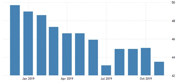 Podmínky v českém zpracovatelském sektoru se v listopadu výrazně zhoršily. Index PMI, který sleduje výrobu, nové objednávky, zaměstnanost, termíny dodávek a zásoby, klesl na 43,5 bodu ze říjnových 45 bodů. Jde o nejprudší pokles za čtyři měsíce a jeden z nejhorších výsledků od poloviny roku 2009. Index nyní klesá nepřetržitě již dvanáct měsíců. Informovala o tom v pondělí společnost IHS Markit. Úroveň 50 bodů v indexu je předělem mezi růstem a poklesem. Výsledek nad 50 bodů znamená zlepšení sektoru.