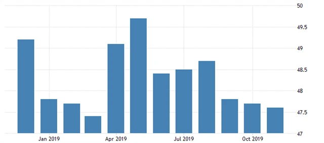 Italský index nákupních manažerů se v listopadu nepatrně snížil, a to na 47,6 bodu z 47,7 bodu v předchozím měsíci. Analytici počítali s poklesem na 47,5 bodu.