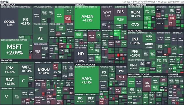 K růstu trhů koncem roku pomáhá očekávání investorů, že USA a Čína brzy podepíší první fázi vzájemné obchodní dohody. V pátek posilovaly hlavně akcie podniků závislých na výdajích spotřebitelů a technologické společnosti. Naopak klesaly akcie bank a poskytovatelů komunikačních služeb.