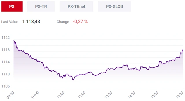 Pražská burza v úvodu týdne oslabila, nedařilo se finančním titulům