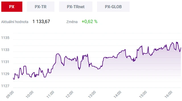 Pražská burza zakončila páteční obchodování v pozitivním pásmu, index PX zpevnil o 0,62 % na 1 133,67 bodu. Nejvyšší zisk si připsala pojišťovna VIG, jež zpevnila o 2,48 % na 660 Kč. Objem obchodů byl s 328 miliony korun podprůměrný. Nejobchodovanější byly akcie Komerční banky, které odepsaly 0,18 % na 829,50 Kč.