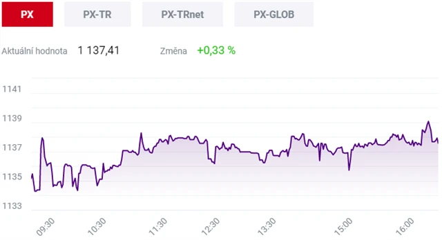 Pražská burza počtvrté po sobě vzrostla a čtvrteční obchodování zakončila na maximu za téměř dva roky. Index PX zpevnil o 0,33 % na 1 137,41 bodu. Nahoru burzu táhly zejména akcie Avastu, které zdražily o 2,67 % na 154 Kč, proti trendu naopak šla Erste Group Bank, jež odepsala 0,97 % na 859,20 Kč. Objem obchodů byl s 233 miliony korun podprůměrný. Nejobchodovanější byly cenné papíry elektrárenské skupiny ČEZ (+0,87 % na 520 Kč).