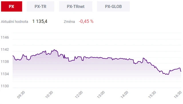 Pražská burza ve čtvrtek po středečním růstu na téměř devítileté maximum oslabila. Index PX klesl o 0,45 procenta na 1 135,40 bodu. Nedařilo se akciím vývojáře antivirového softwaru Avast, v plusu se naopak udržely cenné papíry Monety a Kofoly. Zobchodovaný objem čítal zhruba 305 milionů korun, a byl tak podprůměrný.