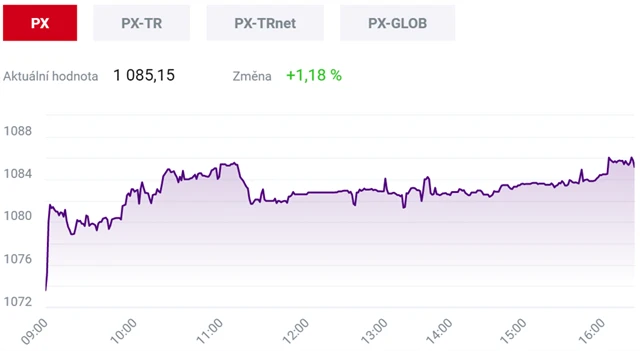 Pražská burza zakončila pondělní obchodování v zelených číslech, index PX zpevnil o 1,18 % na 1 085,15 bodu. Dařilo se zejména vývojáři antivirového softwaru Avast, jehož akcie zdražily o 3,91 % na 133 Kč, a částečně se tak oklepaly z propadu z předcházejícího týdne. Objem obchodů byl s necelými 353 miliony korun podprůměrný.