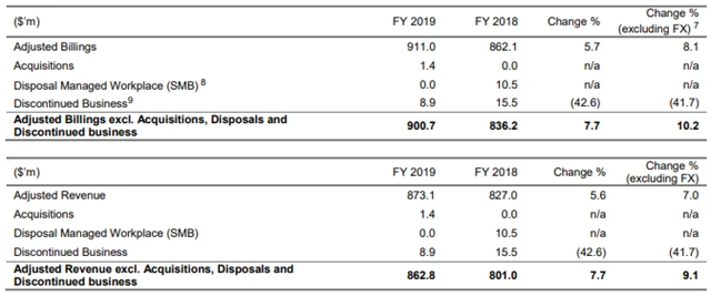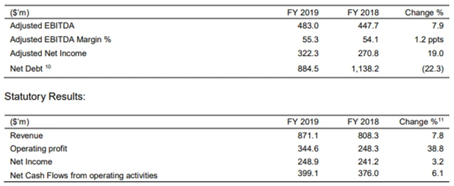 Upravené tržby (část fakturací spadající do finančního roku 2019) bez započtení nepokračujících operací se zvýšily o 5,6 % na 873,1 milionu USD, upravený zisk EBITDA společnosti stoupl o 7,9 % na 483 milionů USD a upravený čistý zisk se Avastu zvýšil o 19 % na 322,3 milionu USD. Růst tržeb byl tažen hlavně prodejem neantivirových produktů jako VPN či CCleaner.