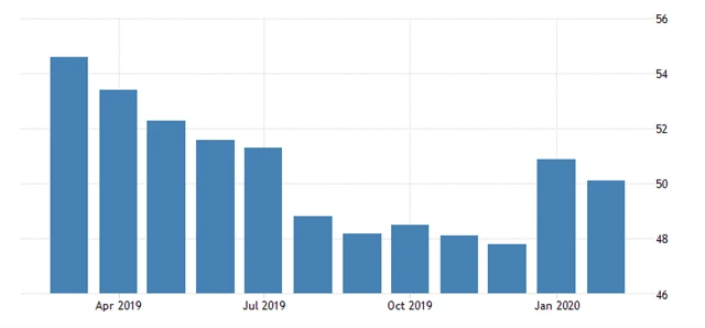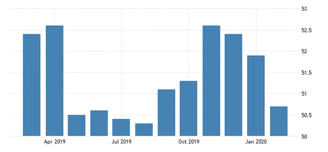 Výrobní index nákupních manažerů od společnosti IHS Markit v únoru podle finálních dat dosáhl 50,7 bodu. Předběžný ukazatel byl 50,8 bodu a čekalo se jeho potvrzení. V lednu PMI dosáhl 51,9 bodu.