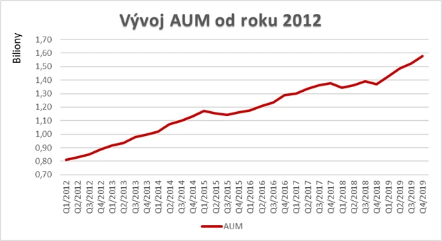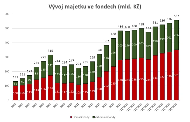 Celkový objem investic v ČR je už tradičně obdobný jako výdaje českého státního rozpočtu. Na konci roku 2019 dosahoval více než 1,58 bilionu korun. Jedná se o peníze, které lidé nebo instituce svěřili správcům aktiv v České republice nebo jejich prostřednictvím správcům aktiv v zahraničí.